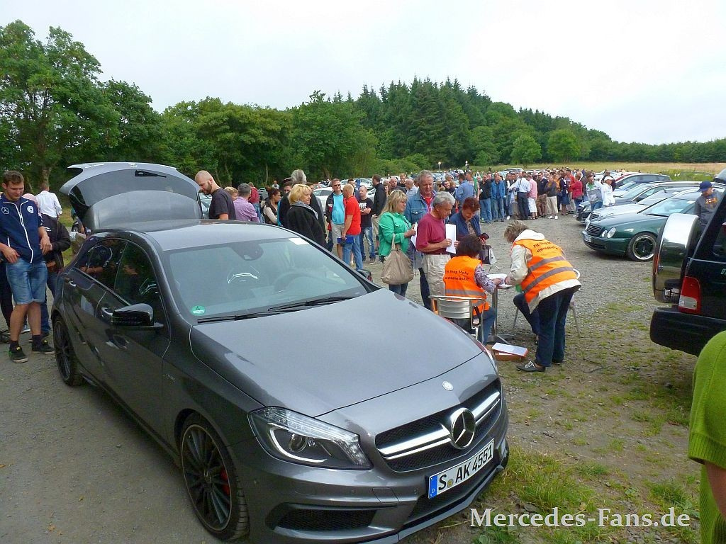 Mission erfüllt. 257 Mercedes-Fans haben am Samstag einen neuen Weltrekord für das Guinness Buch der Rekorde aufgestellt. Mit einer kompletten Runde über die Nordschleife des Nürburgrings gelang somit der längste Mercedes-Benz Autokorso auf einer öffentlichen Straße. Und auch der bisherige Rekordhalter, Peter Mohr, freute sich mit und das aus gutem Grund: Im Oktober 2011 hatten wir mit 219 Fahrzeugen einen Rekord für das Guinness Buch der Rekorde aufgestellt, der bis heute noch Gültigkeit hat, jetzt haben wir die Latte auf 257 Fahrzeuge hochgelegt, freut sich der in Kall ansässige Initiator der Rekordfahrt.