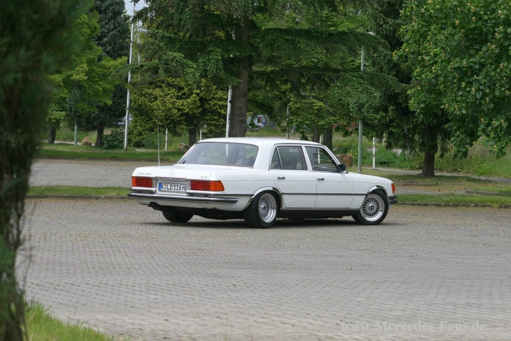 Die erstmals offiziell genannte "Mercedes-Benz S-Klasse" - interne Bezeichnung W 116 – wurde im September 1972 der Öffentlichkeit präsentiert. Sie löste die Baureihe 108/109 ab und umfasste zunächst die Typen 280 S, 280 SE und 350 SE. Ein halbes Jahr später wurde die S-Klasse Limousine auch mit dem hubraumstärkeren 4,5-l-V8-Motor angeboten. Zum selben Zeitpunkt erschien der Typ 450 SEL mit einem um 100 mm verlängerten Radstand. Im Mai 1975 wurde der Typ 450 SEL 6.9 als neues Spitzenmodell der Baureihe und legitimer Nachfolger des 300 SEL_6.3 präsentiert; der leistungsstarke 6,9-l-V8-Motor erreichte eine Leistung von 286 PS und ein maximales Drehmoment von 549 Nm. In der viereinhalbjährigen Produktionszeit wurden gerade 7.380 Exemplare gebaut. Auch der hier gezeigte V116 trägt ein 6.9 am Heck, doch das ist – Zitat Besitzer Dennis Kalscheuer „Ein Hauch von Traum“... Der Kölner stand schon immer auf ältere Autos und hat den „Virus Auto“ von seinem Stiefvater mit 8 Jahren eingepflanzt bekommen: „Meine Projekte waren in den ersten 11 Jahren meines Führerscheins immer meine Alltagsfahrzeuge“, erklärt Dennis, dem das alles irgendwann zu stressig wurde und sich ein „Vernunft Auto“ gekauft hat, das original bleiben sollte. Aber der Virus ließ den 31-Jährigen nicht los: „Ein 'Spaß Auto' musste her und am besten mit H-Zulassung...“. Der 116er als typisch deutsches Auto Also machte sich der gelernte Karosserie- und Fahrzeugbauer auf die Suche nach einem geeigneten Untersatz, ihm gefielen immer mehr die Autos aus den 70er Jahren und am besten mit dezentem Tuning. Dazu sollte „der Oldtimer solide, robust, alltagstauglich und die Ersatzteilbeschaffung sollte einfach“ - was lag da näher als ein schöner Stern? Schließlich fahren Dennis Eltern einen Mercedes W124 300TE 24 V und er selbst hat mal 2 ½ Jahre als Taxi-Fahrer einen 220 TE (W211) gefahren. Dazu fand er alte Mercedes schon immer cool – vor allem die Baureihe 116: „Das Modell erinnert mich immer an meine Kindheit, typisch Deutsch mit viel Geld“. Und nun ging die Suche los, es wurden die einschlägigen Seiten im Netz durchsucht, bis Dennis und seine Frau bei eBay bzw. Mobile den 450 SEL der Baureihe 166 gefunden hatten! „Der Wagen war in einem guten, gebrauchtem dem Alter entsprechenden Zustand mit Lackmängeln, kleinen Beulen und hier und da mal geschweißt worden“, erklärt Dennis. Eigentlich entsprach der 450 farblich gar nicht der Vorstellung der beiden: „Wir wollten was typisch 70er Jahre Mäßiges haben - 'Ikonengold oder milanbraun metallic' wäre schon geil gewesen.“ Die Farbkombination außen weiß mit braunem Lederinterieur hat den beiden jedoch auch sehr gut gefallen, so dass der Deal gemacht wurde. Tuning zeitgenössisch: Felgen & Fahrwerk Das gute war, dass der Wagen technisch in einem guten Zustand war, so dass Dennis nicht viel tun musste. Dass er den Mercedes-Benz nicht soooo original wie beim Kauf lassen wollte – zeitgenössisches Tuning ist das Stichwort, war aber klar! Neben einer 80 mm Tieferlegung des Fahrwerks, das nun mit H&R Federn und Bilstein-Gasdruckdämpfern ausgestattet ist, sollte die Limousine auch auf ordentlichen Rädern stehen. Dennis Wahl fiel auf fast schon klassische BBS in 8x16“, die mit Bridgestone Reifen in 205/55 R16 vorne und 245/45 R16 hinten bezogen wurden. Die Umbauarbeiten – auch die Installation des AMG-Frontspoilers - erledigte der Kölner selber oder mit Hilfe seiner Stiefvaters, der selbstständiger Kfz-Meister ist. Unter der Haube der 116er sollte auf jeden Fall ein V8 stecken, Dennis und seine Frau mussten sich aber mit dem 4,5-l-Einspritzmotor und 226 PS begnügen: „Der 'Sechsneuner' wäre zwar immer ein Traum, aber für kleines Geld gibt es nichts Anständiges mehr und bei Servicestau ist das Auto ein Fass ohne Boden“, erklärt der 31-Jährige. Auf der Suche nach der Geschichte der S-Klasse „Leider hat der Wagen keine Historie, aber das was ich hatte war die Datenkarte vom Wagen“, erzählt der Kölner, der schließlich den Namen und Wohnort des Erstbesitzers „google“-te und Adresse und Telefonnummer herausfand. „Nach über 30 Jahren wohnte dieser immer noch am gleichen Ort“, erinnert sich Dennis, der nach anfänglichem Zögern dann doch das Telefon schnappte: „Es meldete sich wirklich der Name, der auf der Datenkarte stand, es war eine sehr nette alte Dame“, berichtet Dennis. Der Mann war allerdings ein Jahr zuvor im Alter von 83 Jahren verstorben. Leider hatte der Erstbesitzer keinen Wert auf ein Serviceheft gelegt und nach zehn Jahren hatte er den Wagen bei Mercedes wieder in Zahlung gegeben, aber die Dame hatte in ihren Unterlagen noch den originalen Kaufvertrag von 1978 - „somit hat die Historie wenigstens einen Anfang“, meint Dennis! Dennis und seine Frau fahren bei schönem Wetter, meist am Wochenende, auch zu diverse Veranstaltungen – auch oft zusammen mit ihren Freunden aus der „Schöne Autowagen IG“. „Oft gibt es lustige Situationen, wenn man mit diesem Wagen unterwegs ist“, erzählt Dennis, „auf den Autobahnen wird oft 'Daumen hoch' gezeigt, oft von älteren Generationen aber dadurch dass der Wagen tiefergelegt ist und zeitgenössische Felgen hat, spricht der Wagen auch jüngere Generationen an.“ Text & Fotos: Thomas Frankenstein Mercedes-Fans Facts [b]1978 Mercedes-Benz S-Klasse 450 SEL (V116)[/b] [b]Antrieb:[/b] V8, 4520 ccm, 225 PS / 165 kW bei 5000 U/min, 370 Nm bei 3250 U/min, mechanisch geregelte Einspritzanlage (K-Jetronic); 3-Gang-Automatikgetriebe, Hinterradantrieb [b]Fahrwerk:[/b] Vorne Einzelradaufhängung mit Doppel-Querlenker-Achse, H&R-Schraubenfedern, Bilstein-Gasdruckdämpfer, Tieferlegung ca. 80 mm, Drehstab-Stabilisator, Scheibenbremsen; hinten Diagonal-Pendelachse mit Anfahrmoment- und Bremsnick-Abstützung, H&R-Schraubenfedern, Bilstein-Gasdruckdämpfer, Tieferlegung ca. 80 mm, Drehstab-Stabilisator, Scheibenbremsen [b]Räder:[/b] Leichtmetallfelgen BBS, vorne