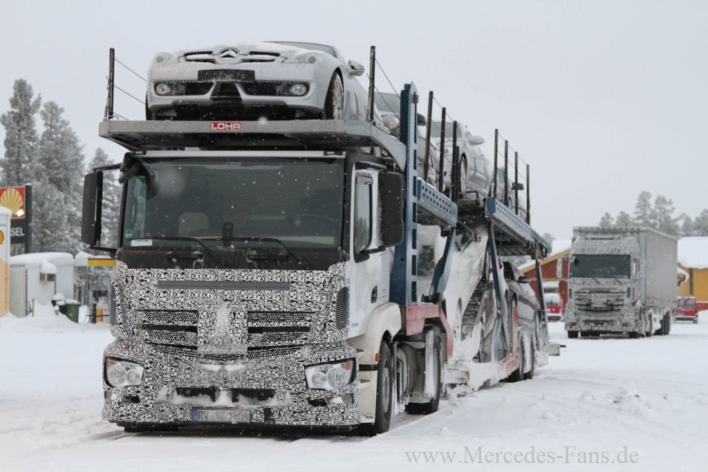 Der Mercedes-Fans Erlkönigjäger entdeckte einen Mercedes-Lkw-Prototyppe mit einer geheimnisvollen Ladung