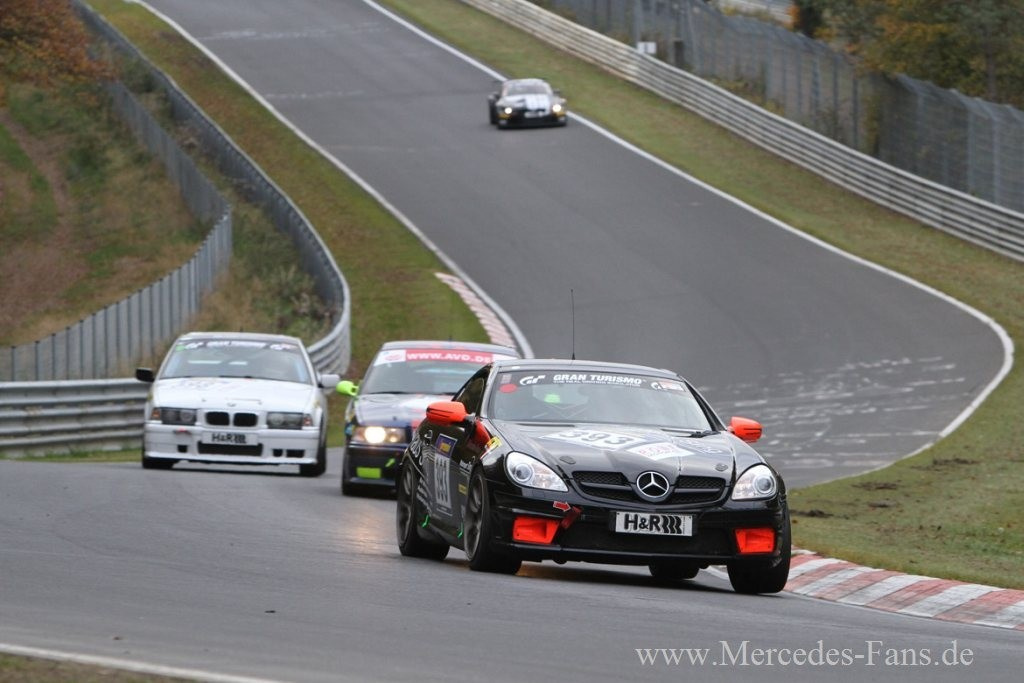 Eigentlich schien der Sing-SLK sehr gut für den zehnten und letzten Lauf der VLN-Saison 2011 vorbereitet gewesen zu sein, doch nach schnellen Rundenzeiten in der Startphase, machte sich nach zwei Reifenschäden in kürzester Zeit Ernüchterung breit. Dabei fing das Rennen mit sehr guten Trainingszeiten für die Mercedes Motorsport-Enthusiasten doch so Erfolg versprechend an.