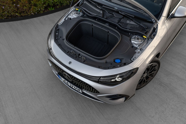 Mercedes hat schon seit Längerem einen Narren an dem Konzept des Shooting Brakes gefressen. Und warum auch nicht? Die Mischung aus einem Kombi und einem Coupé ist schick, ungeachtet des Antriebs. Da mag die Kombi-Praktikabilitäts-Fraktion aufgrund des Stauraumdefizits noch so sehr die Nase rümpfen, wir goutieren die elegante Silhouette. Der Shooting Brake bietet 455 Liter Kofferraumvolumen, das sind immerhin 50 Liter mehr als die Limousinen, aber 30 Liter weniger als beim Vorgänger. Irgendwo muss der Elektromotor samt Technik ja hin. Dafür gibt es vorne einen Frunk mit 101 Litern Volumen. Legt man die Lehnen der Rücksitzbank um, werden 1.290 Liter daraus. Kein Wert, der einen Škoda-Fahrer mit fliegenden Fahnen zum Stern wechseln lässt, aber immerhin ganz ordentlich.
