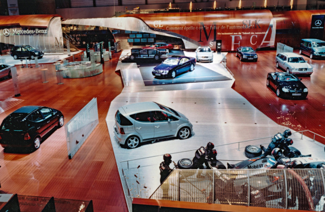 Gleich zwei Premieren auf einmal: Der hier gezeigte CL 600 feiert 1999 auf dem Genfer Autosalon sein großes Debüt – und zwar als eines der ersten Fahrzeuge der neuen Baureihe 215. Entsprechend prominent steht er auf einem Podest mitten im Mercedes-Benz Messestand, flankiert vom silbernen CL 500. Die beiden luxuriösen Zweitürer setzen neue Maßstäbe im Segment. Zunächst kommt der CL 500 noch 1999 auf den Markt, der CL 600 folgt im Frühjahr 2000. Die außergewöhnlichen Naturstein-Zierelemente aus norwegischem Larvikit schaffen es schließlich 2001 über das Individualisierungsprogramm designo in die Serie.